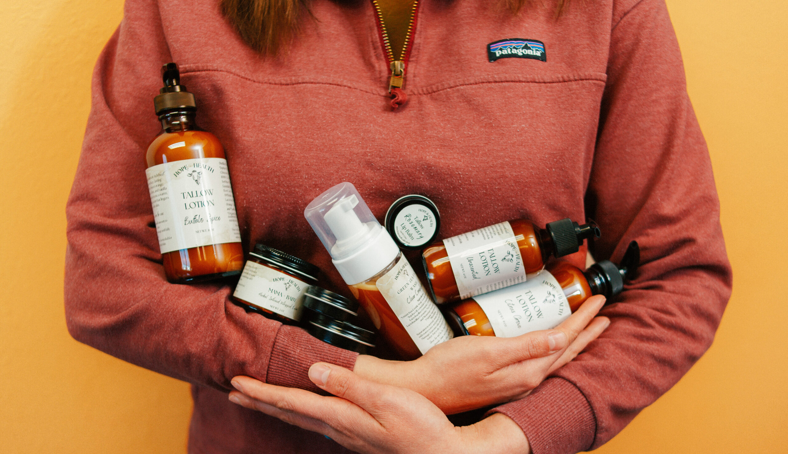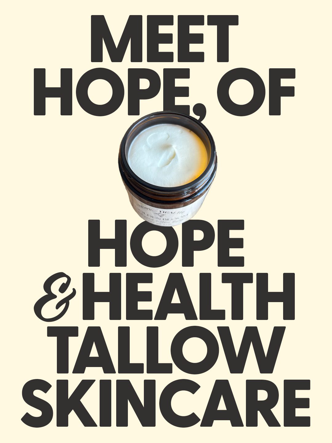 At the heart of every Hope & Health product is that same ingredient. What began as utilizing a byproduct from the half cows she was buying for her family has now grown into a relationship with Red Water Meats, when her half-cow could no longer cover her skincare orders. From raw ingredient to finished jar, every step still passes through Hope’s hands.