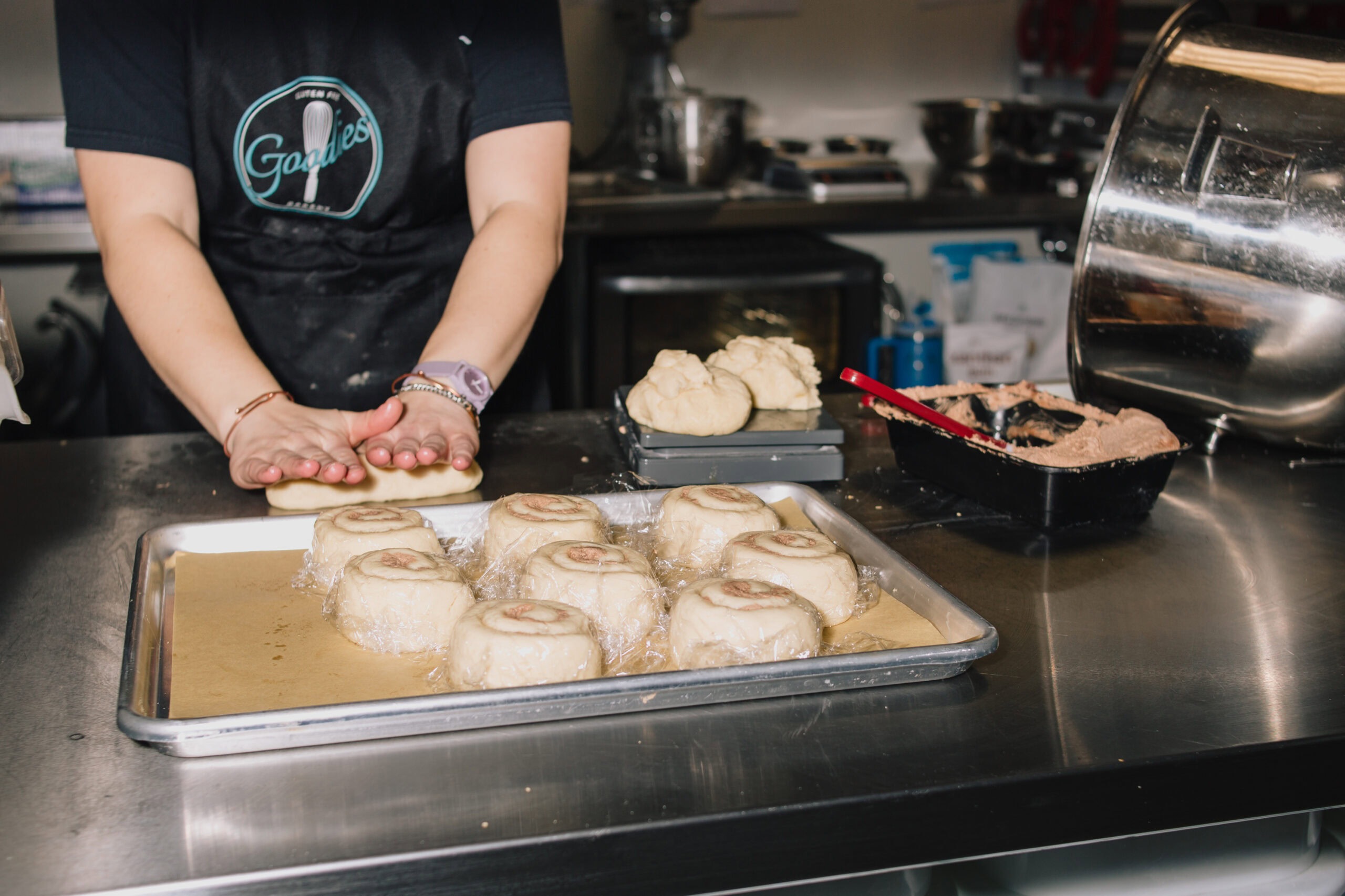 Our third Vendor Spotlight led us to Goodies Gluten Free Bakery, nestled in Black Hawk, just 20 minutes outside of Rapid City. Stepping into their lobby, we were immediately engulfed by the smell of a fresh batch of gluten-free cinnamon rolls baking in the oven. Brooke stepped out of the kitchen to greet us and introduce us to her team. Today, she was working alongside Angela—her first employee, and now one of four. Each of them lightly dusted in flour and beaming at the chance to talk about their bakery journey.