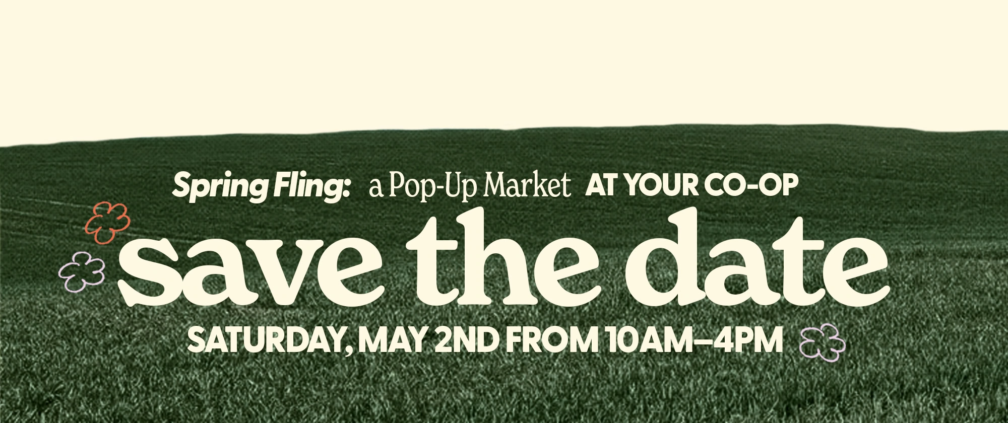 SAVE THE DATE! Breadroot Co-op is hosting our very first Spring Fling on Saturday, May 2nd. Vendor list to be announced! Shop vintage. Shop sustainable. Shop the Spring Fling on Saturday, May 2nd from 10a–4p at your Co-op!